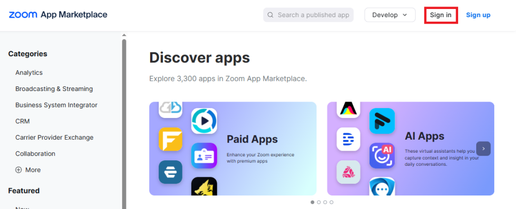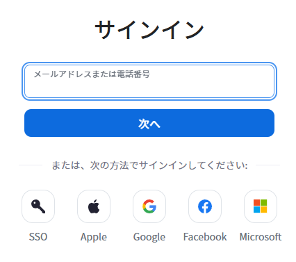 ・ページ上部の「Sign in」から、Zoomアカウントでログインします。