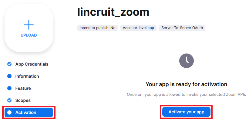 ・「Activation」の「Activate your app」を押すことで、有効化が完了します。