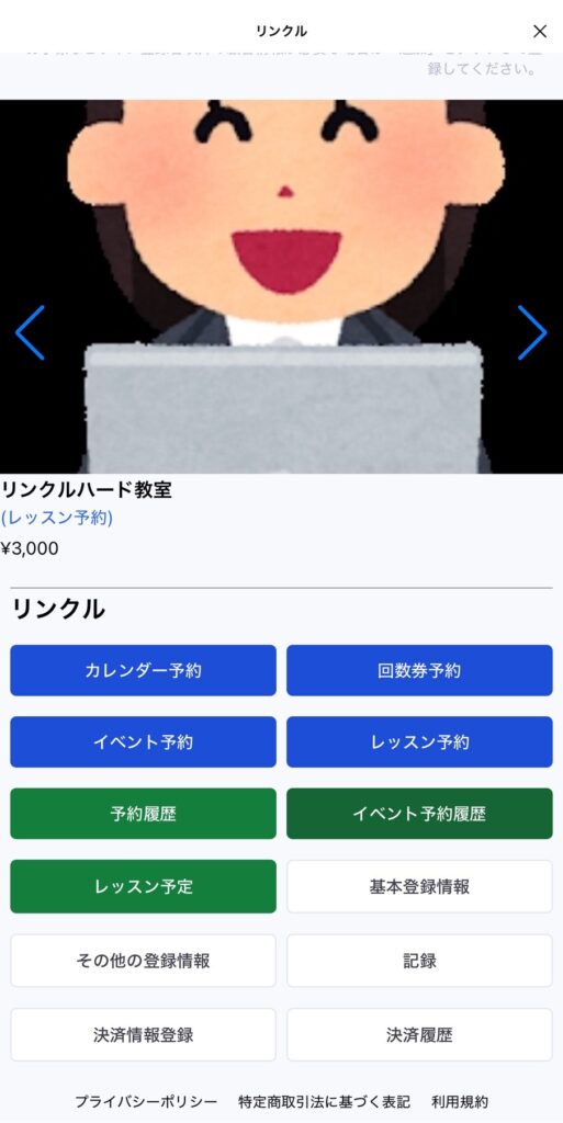 カレンダー予約/イベント予約/レッスン予約のリンク設定
