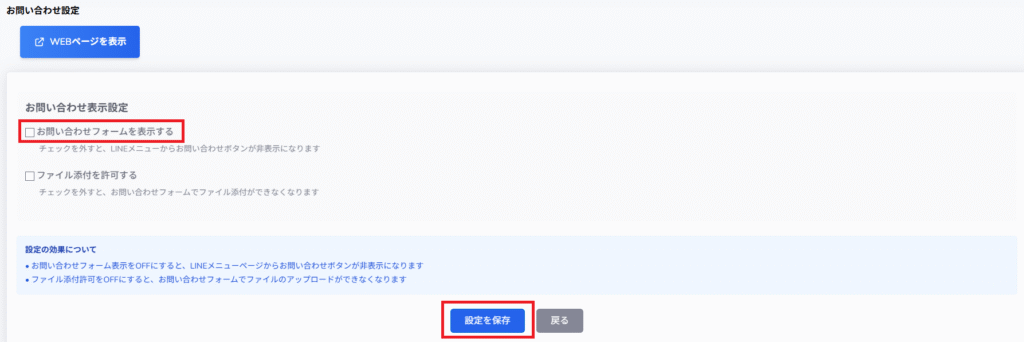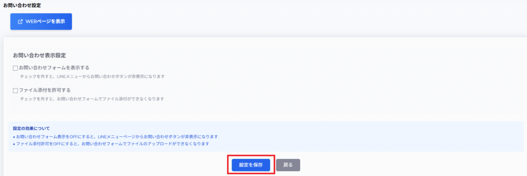 お問い合わせの表示設定や、お問い合わせフォームをリッチメニューに表示しないことによって、ユーザー対応の手間を低減することができます。