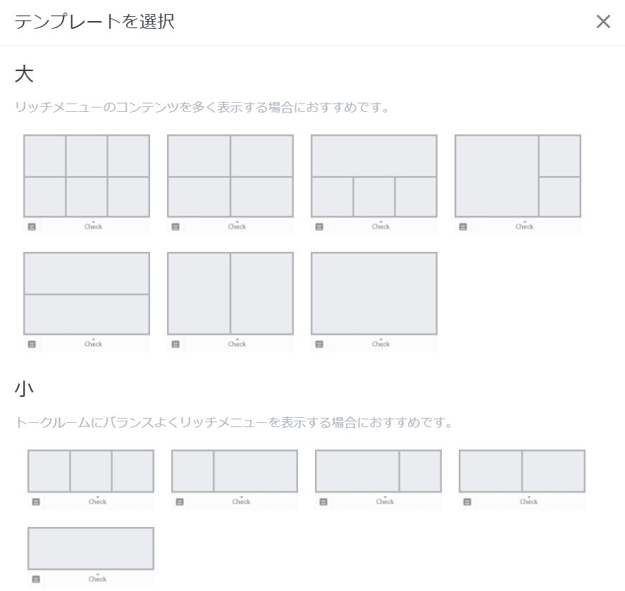 リッチメニューにお問い合わせを表示しない場合は、公式ラインでリッチメニューを作成することで設定できます。