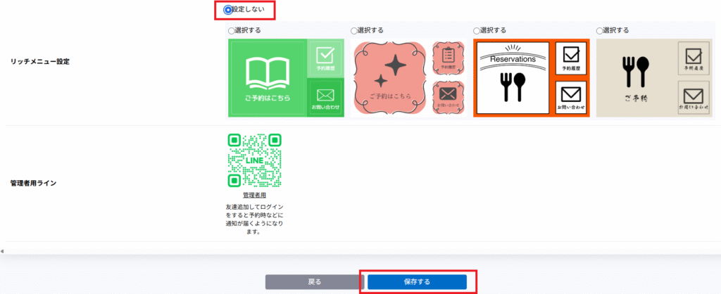 「保存」を選択してお問い合わせが表示されないリッチメニューの作成・設定が完了します。