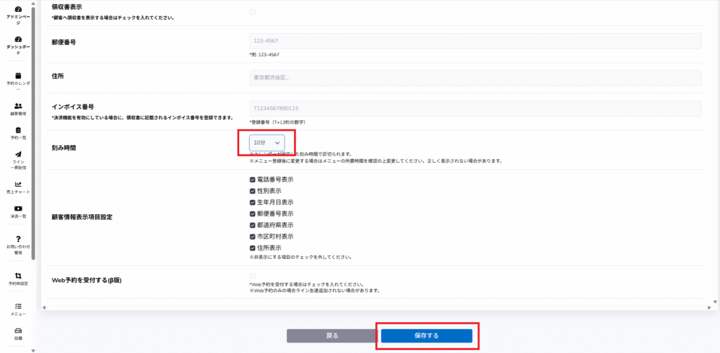 Step2 「刻み時間」を適切な時間(今回は10分)に変え、「保存」を押すことで、所要時間の刻み時間の変更が完了します。