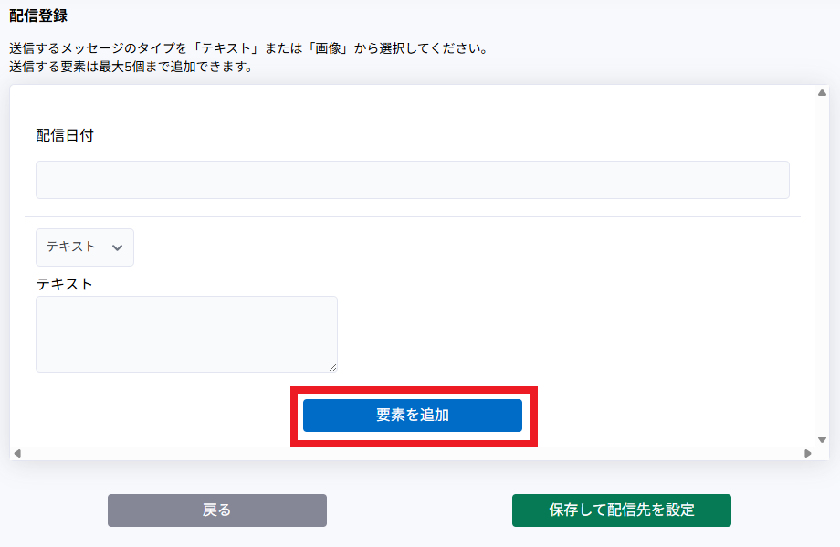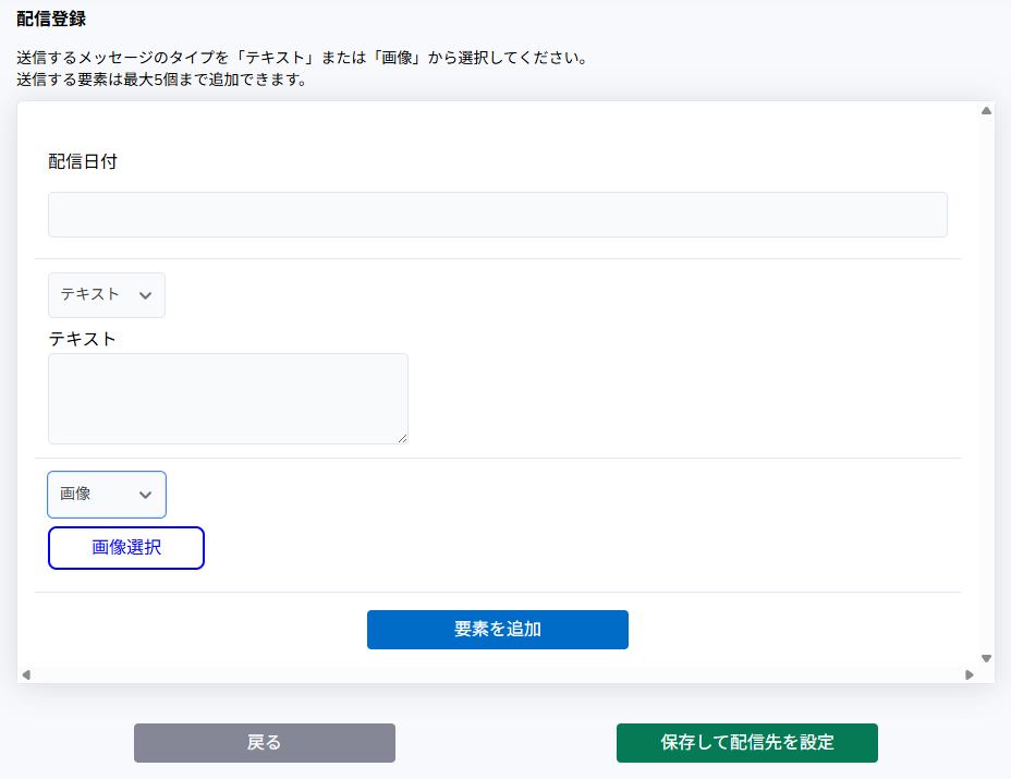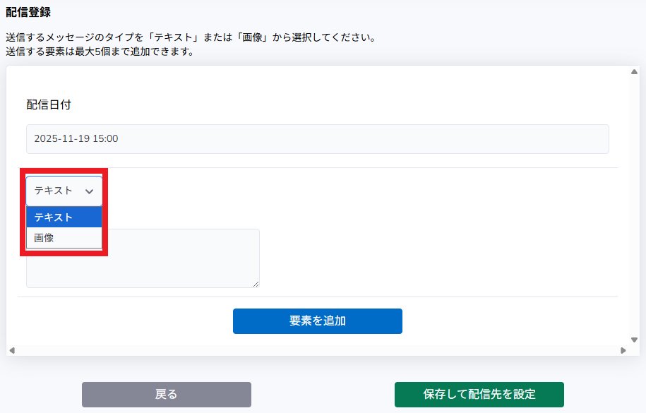 「メッセージタイプ」を「テキスト」と「画像」から選択します。