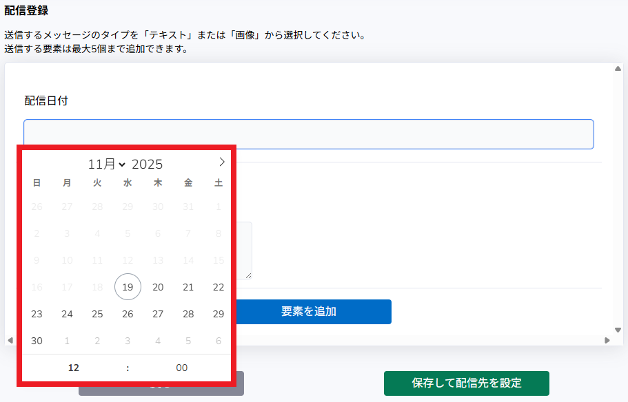 「配信日時」を選択します。