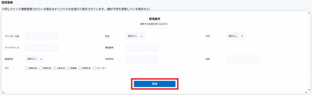 「タグ」や「年代」で検索して配信する人を絞り込みます。