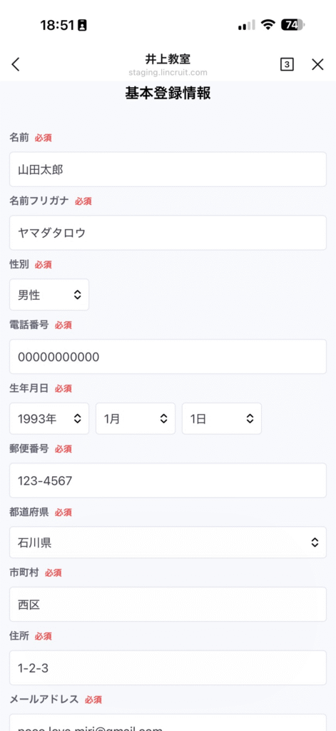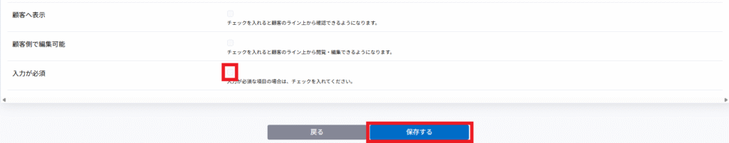 「入力が必須」にチェックをいれると、顧客が入力が必須の項目になります。
