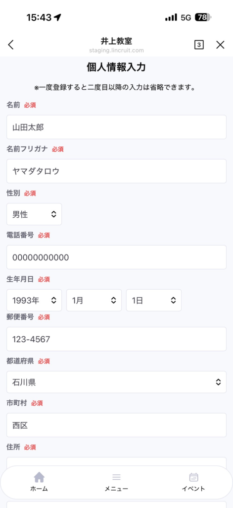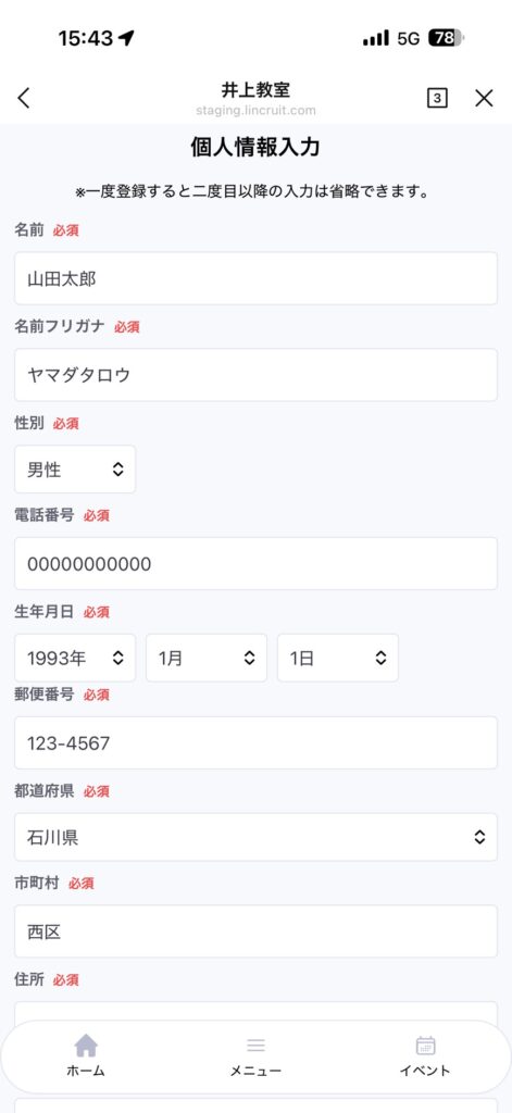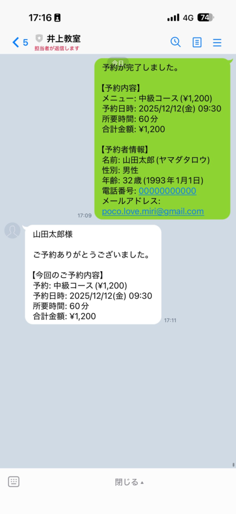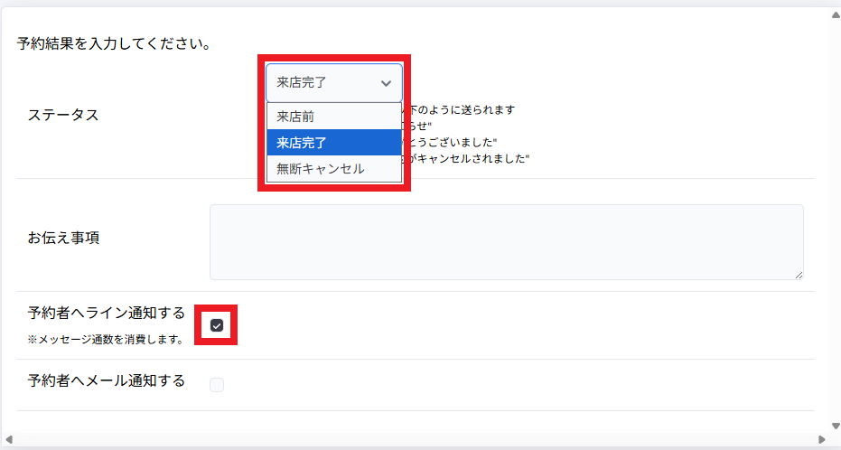 「予約者へライン通知する」もしくは「予約者へメール通知する」にチェックを入れた場合は、通知が送られます。