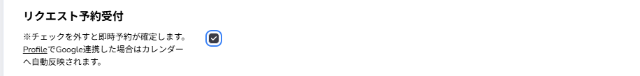 リクエスト予約受付設定は、設定の「カレンダー予約基本設定」から行えます。