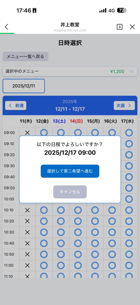 第2希望まで日時を選びます。
