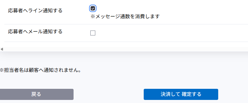 「応募者へライン通知する」にチェックを入れると、予約確定メールが送信されます。