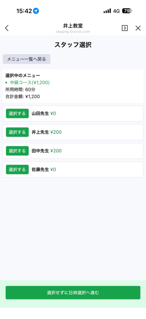 ①リクエスト予約オフの場合