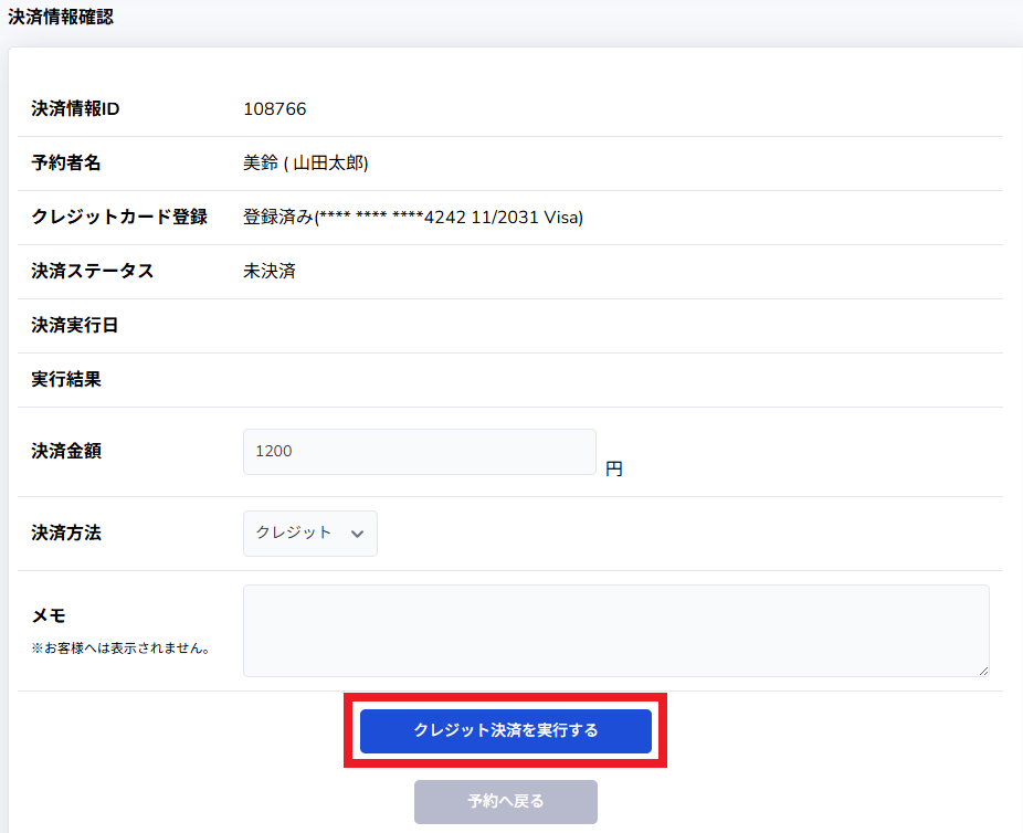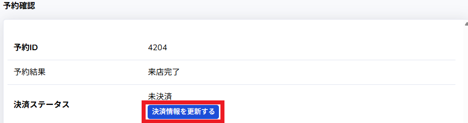 「予約確認」ページに戻り、「決済情報を更新する」を押します。