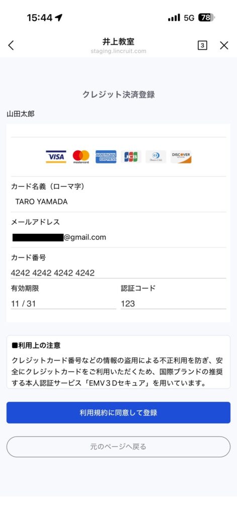 予約時にクレジット登録をしなければ、予約ができません。
